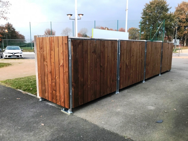 Une solution pratique pour dissimuler des regards les bacs à déchets et disposer d’une aire de rangement sécurisée.