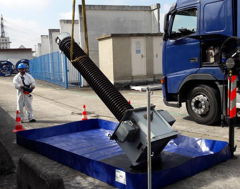 Ce bac de rétention souple est en polyester enduit de PVC (900 g/m2) et résistant aux substances chimiques et polluantes :