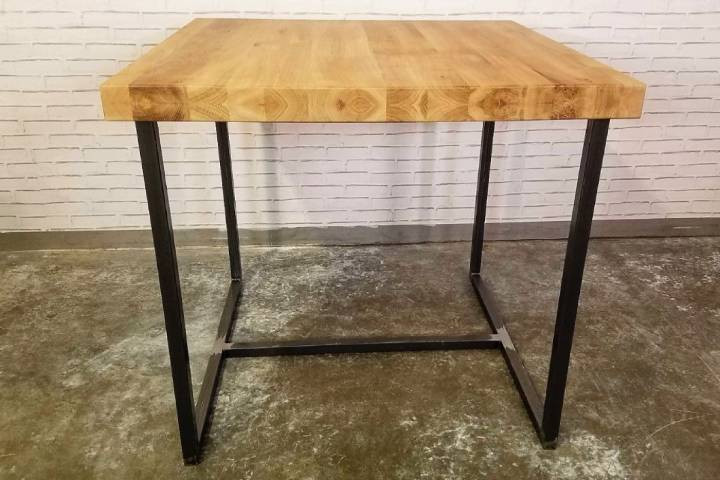 table haute en bois et métal allie élégance, robustesse et personnalisation.