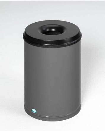 Cette poubelle de tri anti feu possède un principe d'auto extinction pour tout objets flambants dans la poubelle.