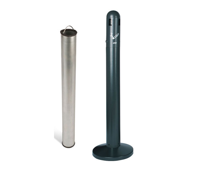 Ce cendrier sur pied tubulaire est discret et fin, conçu pour toutes les zones fumeurs à l'extérieur.