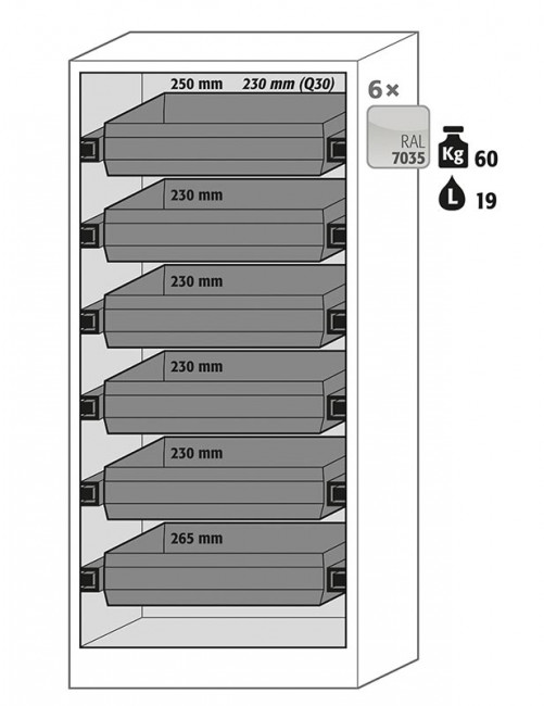 - Bases d’essai : toutes les armoires de cette gamme sont conformes aux exigences de la loi allemande