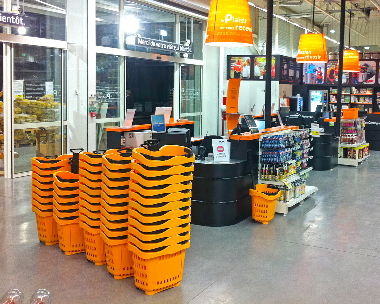 Les paniers à roulettes facilitent le transport de charge pour votre clientèle. Leur fabrication en injection plastique assure une excellente résistance en usage intensif.