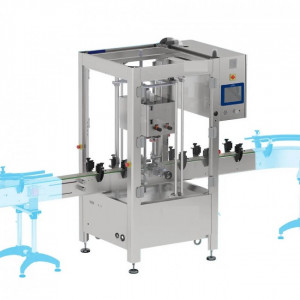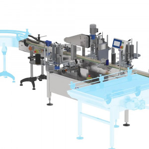 Cette ligne de conditionnement complète rassemble dans une seule ligne le remplissage, le vissage, ainsi que l’étiquetage.