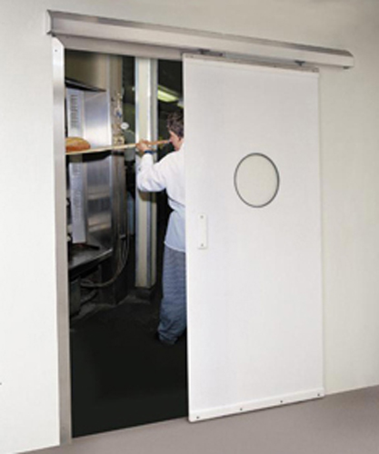 24/02/2025Porte agroalimentaire coulissante 107x210cm. avce hublot coupe feu 30 minutes . pvc blanc ou inox