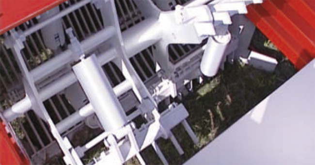 • À mesure que le rotor reprend les pierres, il les dépose dans une trémie qui par la suite est vidée dans le chantier ou dans une remorque.