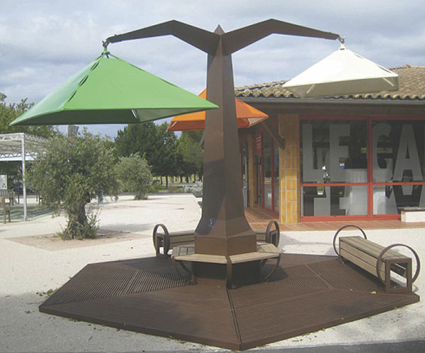 - Cet arbre peut aussi se transformer en arbre-ombrière afin de créer une ambiance de détente à l'abri du soleil.