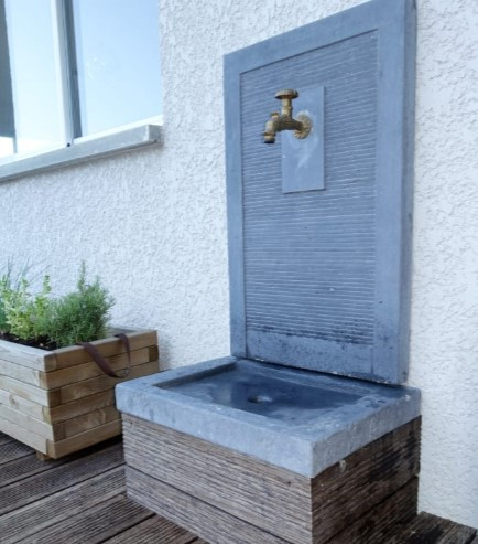 Un simple ajout de colle à carrelage flex extérieur suffit pour fixer cette fontaine avec efficacité et durabilité.