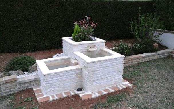 - Fontaine jardinière 3 bacs en pierre reconstituée|