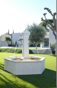 - La fontaine Seville possède un design hexagonale qui peut se marier avec le style de votre jardin. |