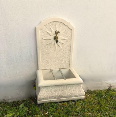 Cette fontaine est livrée avec un robinet en laiton de haute qualité, orné d'un magnifique coq, qui résiste aux intempéries et au gel.
