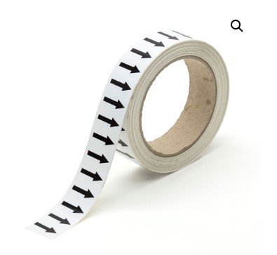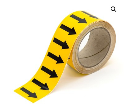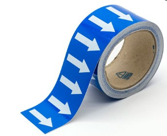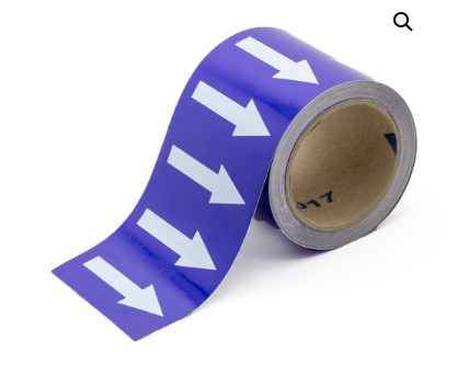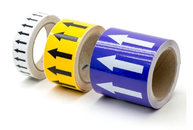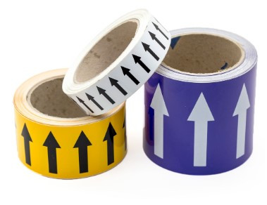 Un marqueur de tuyauteries avec flèches indique le contenu et le sens d’écoulement des substances.
