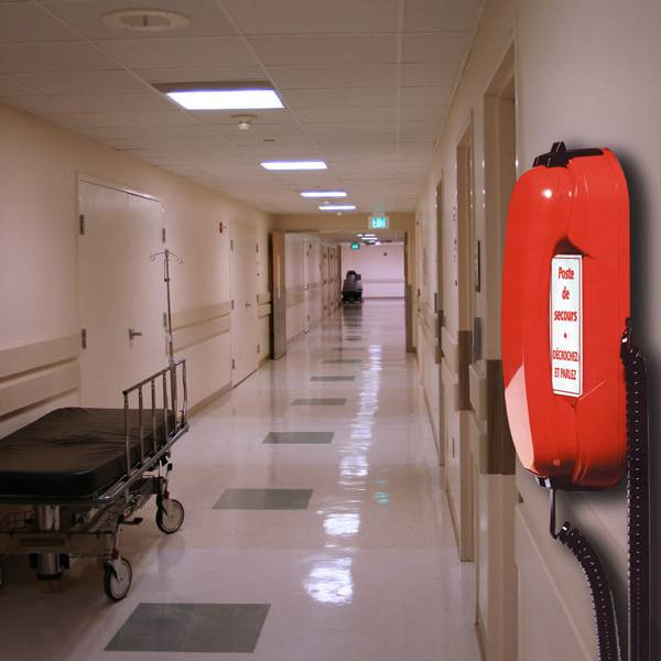 Poste mural avec rappel automatique d'1, de 2 ou de 3 numéros pré-programmées au décroché du combiné.