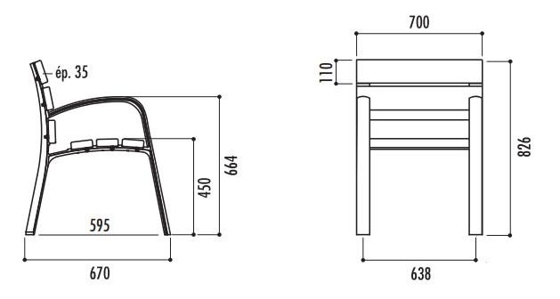 Ce fauteuil en bois exotique conçu ppour les espaces urbains, les parcs et les zones piétonnes.