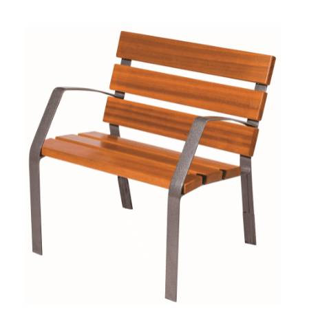 Ce fauteuil public en bois et fonte est conçu pour aménager des espaces extérieurs, parcs, jardins et places publiques.