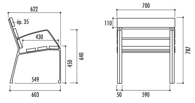 Fauteuil public en bois et fonte - longueur : 700 mm