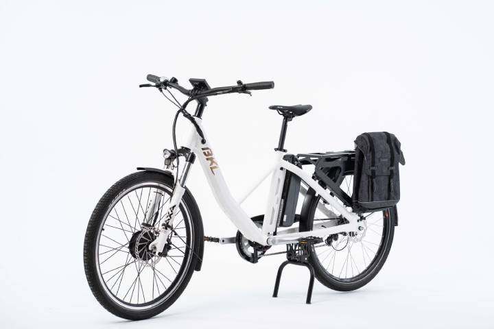 La béquille double stabilise le vélo même chargé. Vous chargez et déchargez en toute sécurité, sans perte de temps. La fourche suspendue et les roues de 20 pouces améliorent le confort sur pavés, bordures et voies urbaines exigeantes.