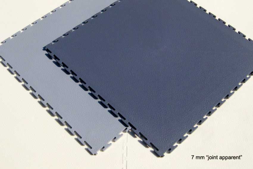 Dalles PVC de 50 x 50 cm emboîtable au petit maillet de caoutchouc. 4 par m2. Très robuste (entre 40 et 55 tonnes par m2).