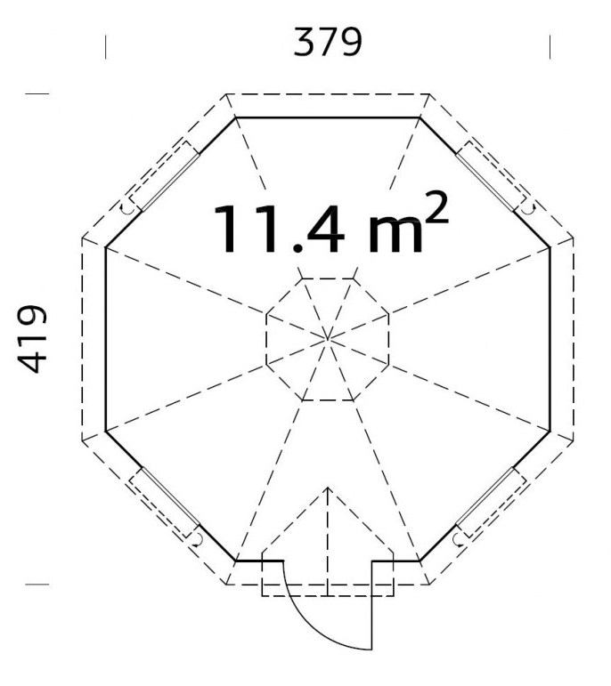 - Diamètre total (Avec dépassement toit) : 4,54 m