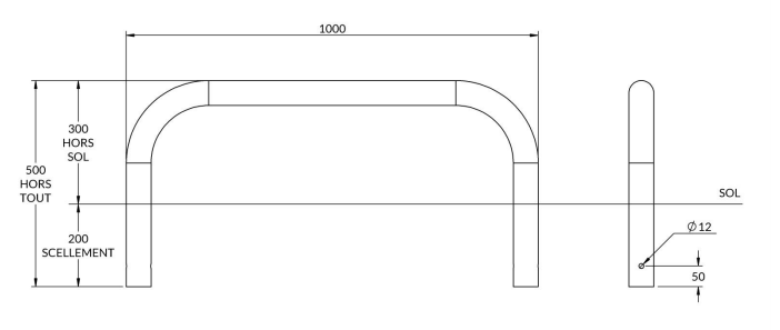 Demandes de devis pour Arceau de bordure acier Ø 60 mm - L.1000 mm ou 2000 mm - H.300 mm - A sceller ou sur platine