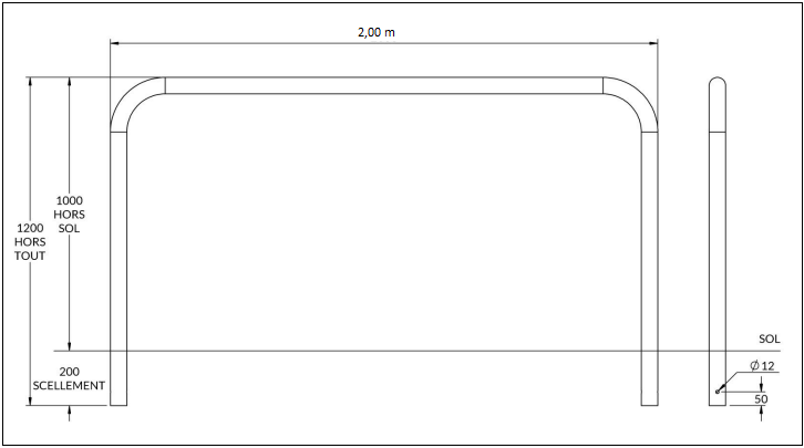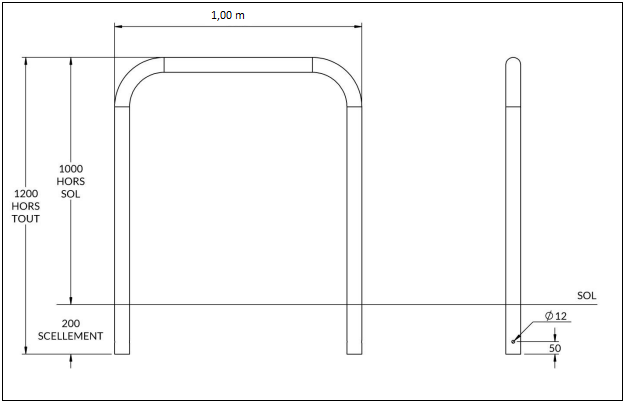 Fiche technique arceau simple - L. 1 m - Peint - Sur platine