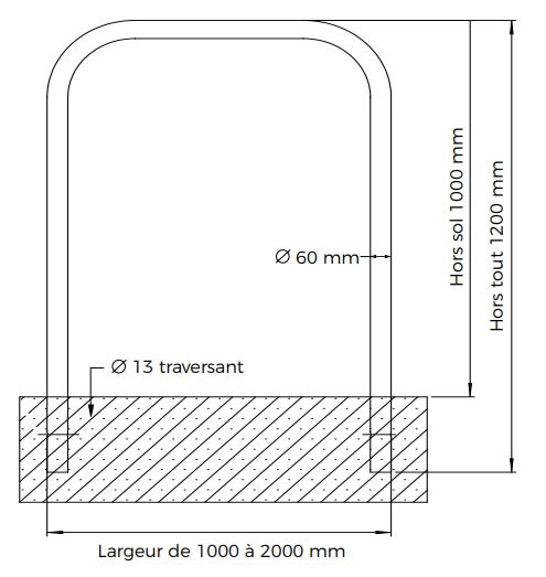 Deux modes de pose s’offrent à vous : fixation à sceller pour une stabilité maximale ou montage sur platine pour une installation simplifiée sur dalle ou sol béton. Cette flexibilité permet d’adapter l’arceau à tous les types de chantiers urbains.