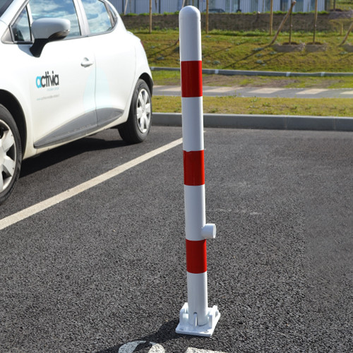Nous vous proposons ce potelet parking rabattable cylindrique d’une construction robuste résistante aux intempéries. Il sert à empêcher le stationnement dans un esp