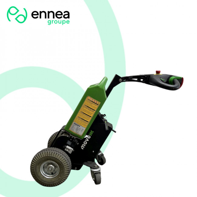 Le Movexx T1000 est équipé d'une batterie 24V. Avec une capacité de charge de 1000 kg et une vitesse maximale de 5 km/h, ce tracteur est parfait pour les opérations nécessitant précision et efficacité. Il dispose également d'un chargeur externe 24V 10A pour une recharge rapide et facile. Le relevé du compteur indique 345 heures d'utilisation.