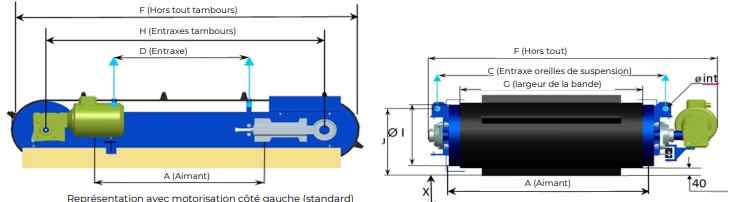 Overband à aimant permanent pour convoyeur - Hauteur jusqu'à 500 mm