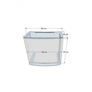 Il mesure 90 cm de largeur et 56 cm de profondeur, avec une hauteur de 79 cm.