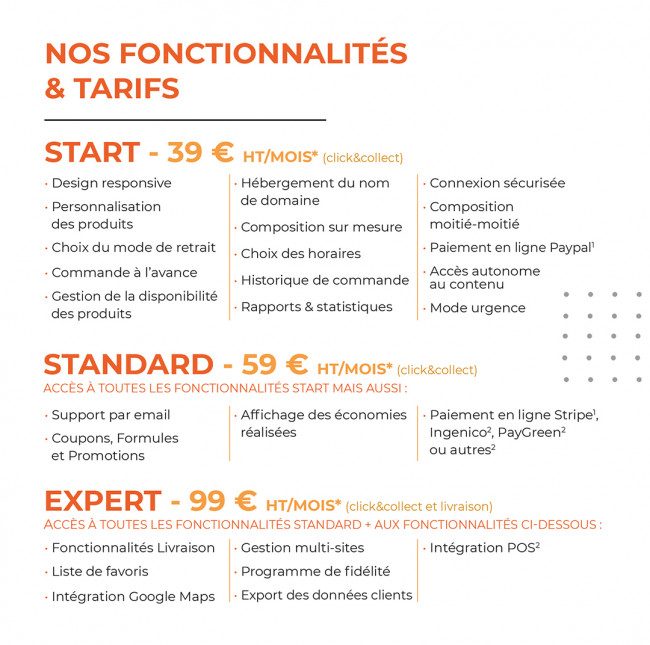 - Un back office dédié : pour créer et gérer en totale autonomie la carte du restaurant (produits, modification des prix, photos etc.)