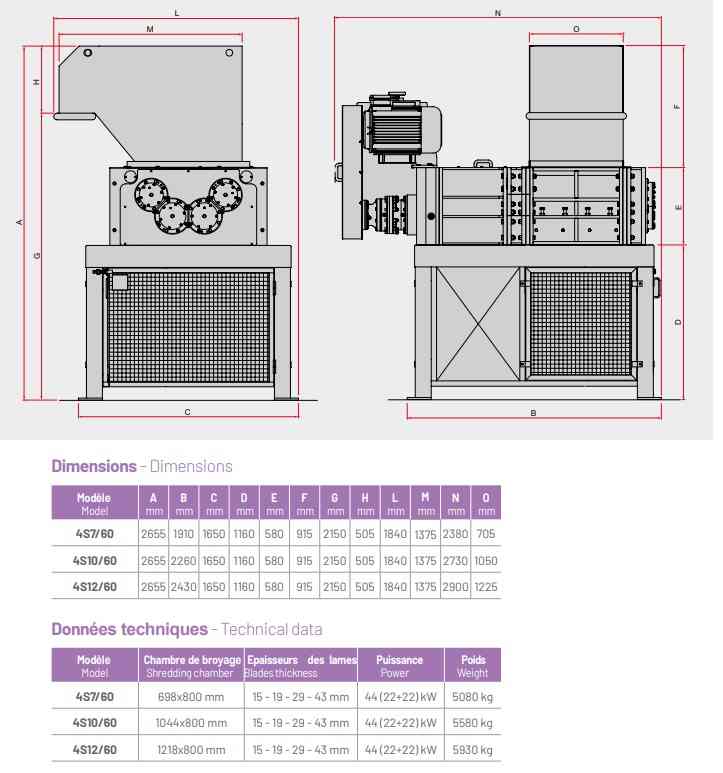 Ce broyeur déchiqueteur industriel dispose d'une puissance de 44 kW, répartie sur deux moteurs de 22 kW chacun.