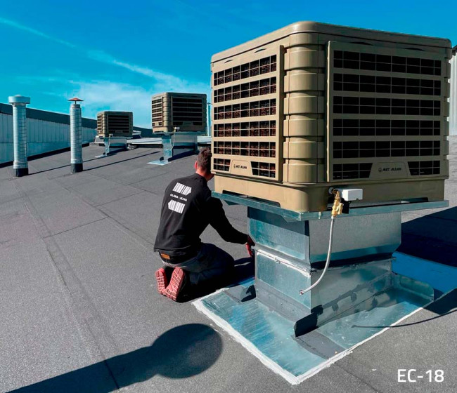 Pour refroidir l′air, une technologie de refroidissement par évaporation est utilisée, qui consiste à faire passer l′air extérieur à travers des panneaux humidifiés avec de l′eau qui, à travers cette zone, se refroidit et augmente son humidité. L′air traité est entraîné par un ventilateur à l′intérieur de la pièce et en renouvelant les températures de confort de l′air intérieur sont atteintes.