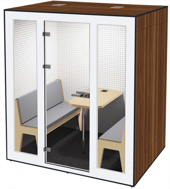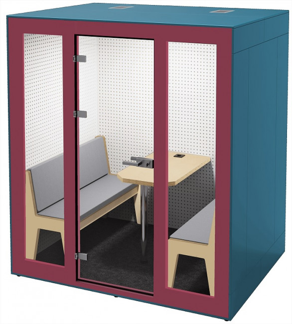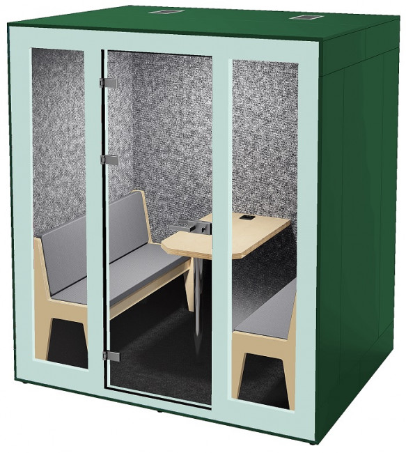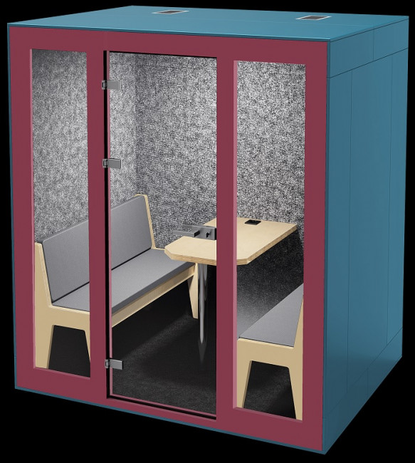 Ces cabines acoustiques Quatro permettent d'accueillir confortablement jusqu'à 4 visiteurs.