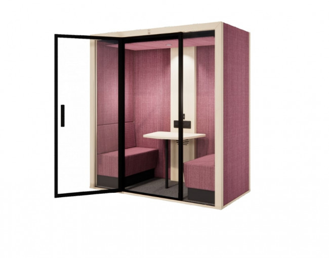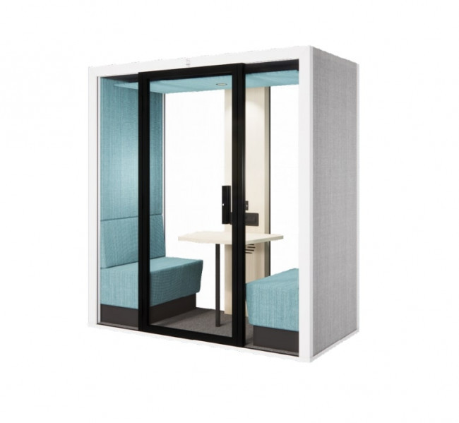 Avec son gabarit compact (200 x 100 x 220 cm), la cabine Duo trouve sa place dans les espaces de travail ou les zones de circulation sans encombrer, tout en offrant suffisamment de confort pour des discussions productives. Elle peut être installée en version fixe ou mobile, selon les besoins de votre espace.