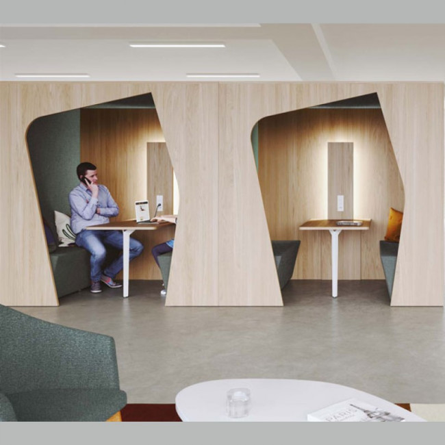 Cabine acoustique pour open spaces est confortable et connectée pour échanger, communiquer et travailler en toute tranquillité