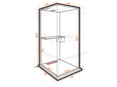 La cabine est équipée d’un éclairage LED avec détecteur de présence pour ne consommer que lorsque vous êtes à l’intérieur.