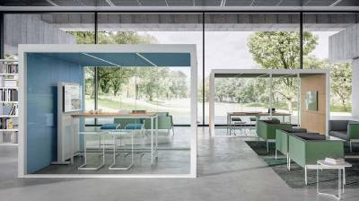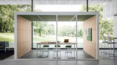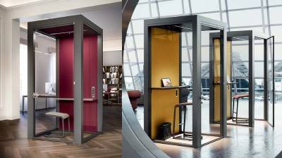 La version individuelle comprend un système d’éclairage LED ainsi que des prises électriques. Pour ceux qui souhaitent plus d’intimité, les fenêtres d’entrée sont aussi disponibles en version translucide. Vous pouvez ainsi créer un espace personnel, sans bruit ni distraction, au cœur de votre environnement de travail.