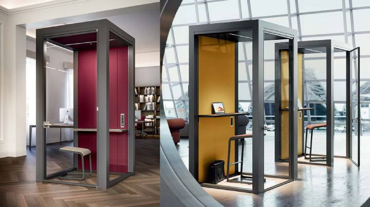 cabine phonique de bureau peut servir aussi bien de poste individuel que d’espace de réunion.