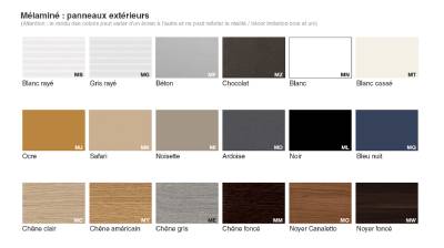 Même composition que les parois, charnières oléo-dynamiques, ouverture 90°, orientation droite/gauche |