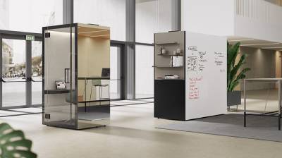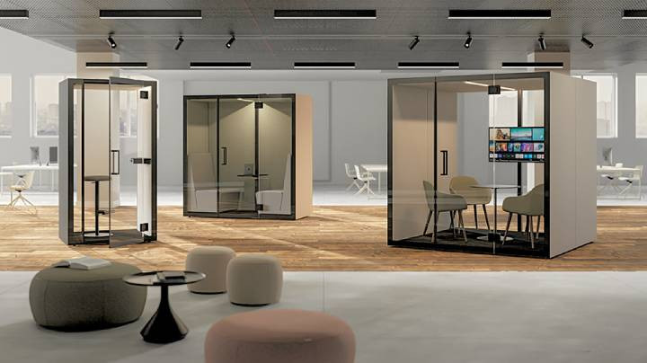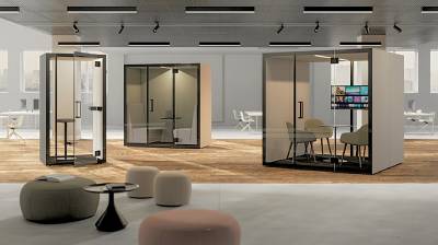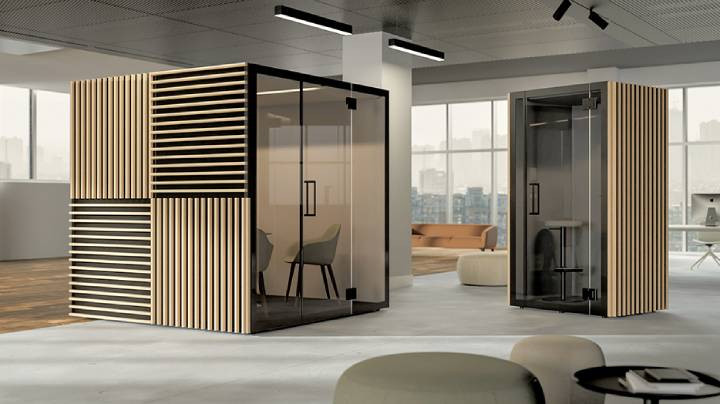 Modules avec 3 murs pleins + 1 porte vitrée, ou 2 murs pleins + 2 murs vitrés (incluant la porte) |