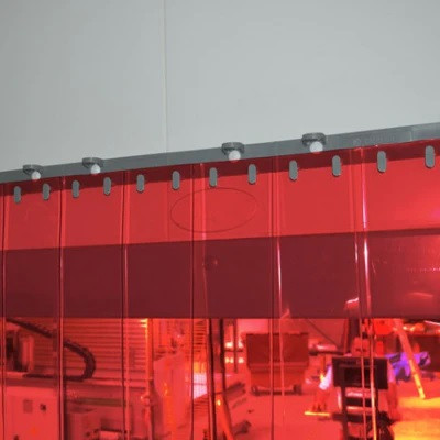 - Rideaux à lanières PVC Standard rouge transparent recouvrement 50%, 100% et sur mesure,