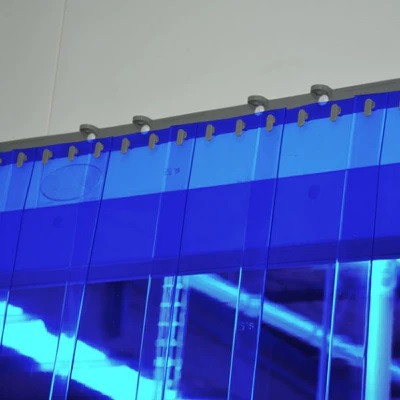 - Rideaux à lanières PVC Standard bleu transparent recouvrement 50%, 100% et sur mesure :