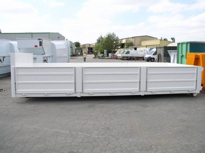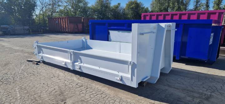 Cette benne est conçue pour être levée et déplacée par un camion équipé du bon système. |