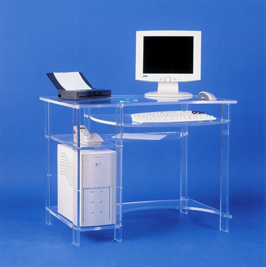 Ce bureau 100 % plexiglass est idéal pour accueillir un poste informatique complet..