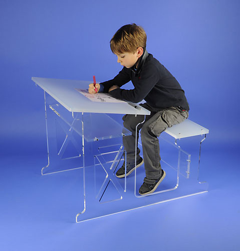 Bureau d'écolier en Plexiglas plateau dépoli satiné