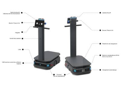 La sécurité est un aspect primordial. Equipé de capteurs omnidirectionnels à 360°, il peut détecter et éviter les obstacles dans toutes les directions. Cette fonctionnalité garantit non seulement la santé et sécurité du personnel travaillant à proximité, mais aussi une cohabitation fluide dans des espaces partagés. Le robot peut interagir en toute sécurité avec les employés et les autres machines, sans risquer de provoquer des accidents ou des interruptions.
