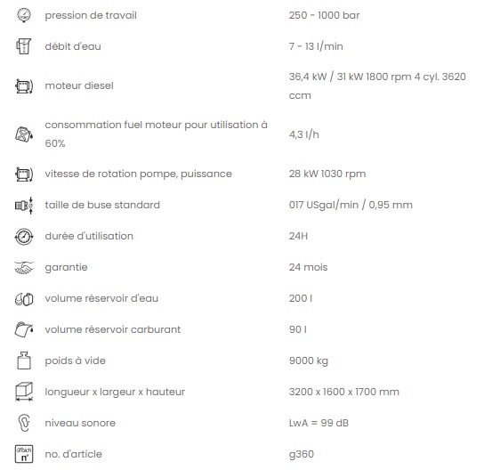 Ce nettoyeur très haute pression délivre une pression de service 250 à 1000 bar.