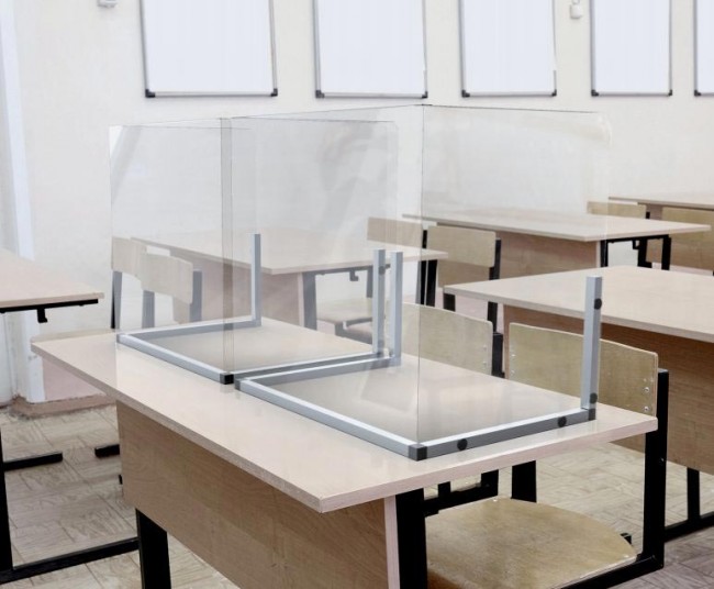 Cet écran anti-contamination limite la possibilité de propagation de virus dans les salles de classes.