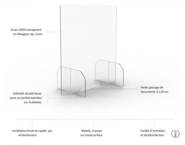- Ecran 100% transparent en Plexiglass ép. 5mm